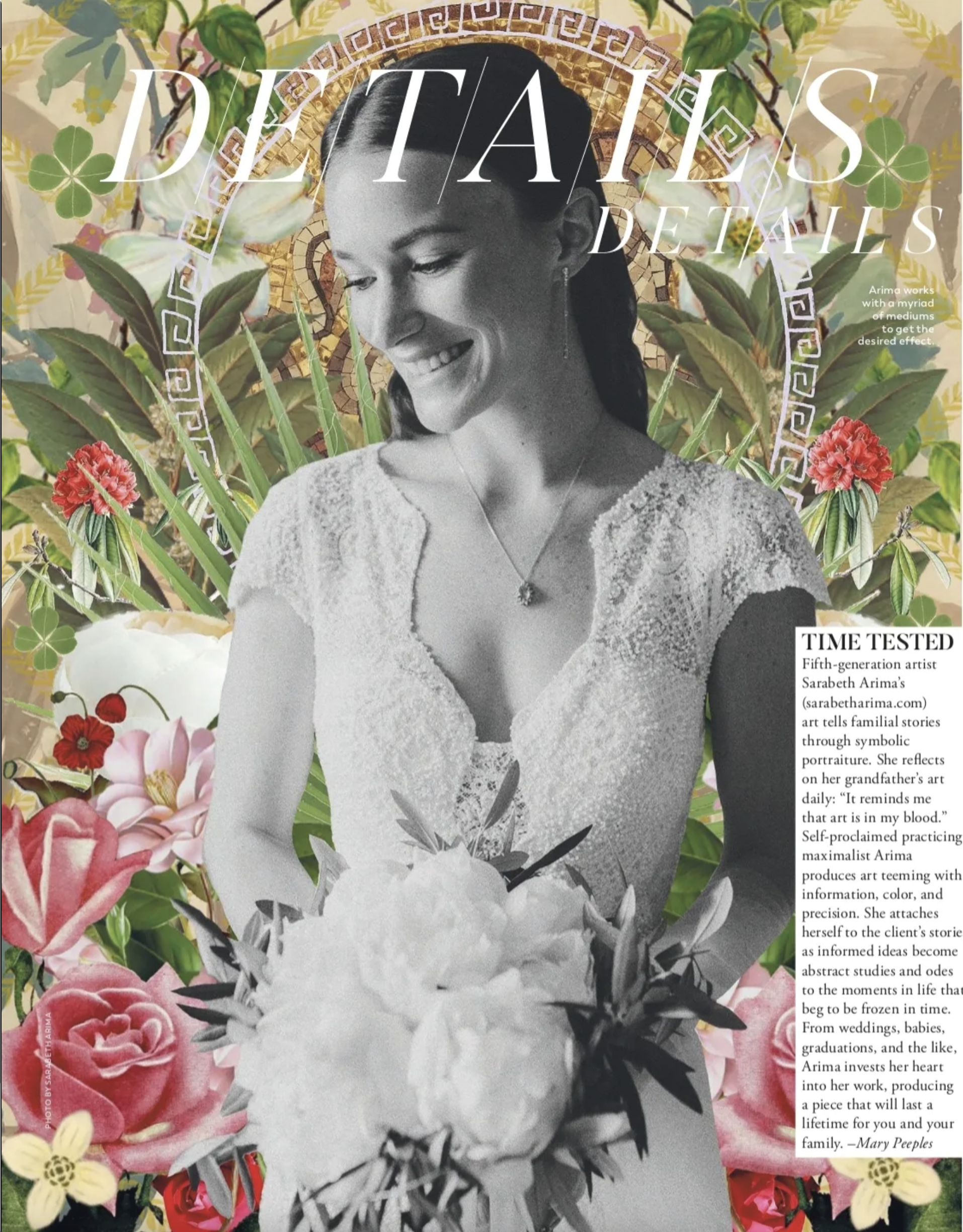 Fifth-generation artist Sarabeth Arima's (sarabetharima.com) art tells familial stories through symbolic portraiture. She reflects on her grandfather's art daily: "It reminds me that art is in my blood." Self-proclaimed practicing maximalist Arima produces art teeming with information, color, and precision. She attaches herself to the client's stories as informed ideas become abstract studies and odes to the moments in life that beg to be frozen in time.